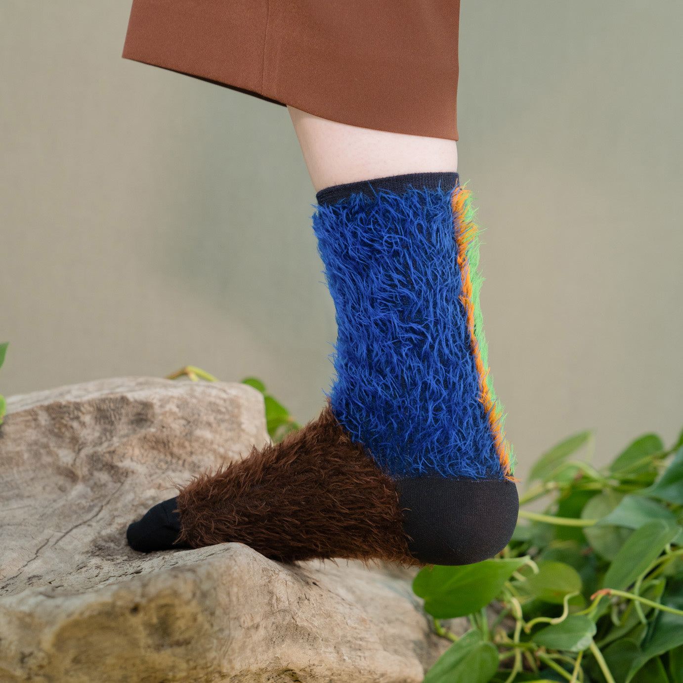 COQ's forest is visited by a variety of birds from the northern regions. These socks are inspired by these adorable birds that bring joy to the morning, featuring bright color transitions. The voluminous fur and point color line are characteristic features. The reversible design allows for use on both the front and back sides. Enjoy coordinating with the color of your shoes, such as sneakers.