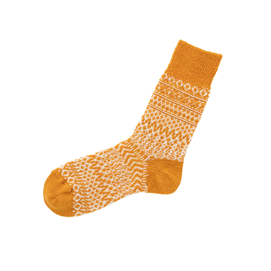 Shrink-proof wool was selected to produce these Jacquard socks. This plush material has volume similar to a pile - enveloping the feet in softness and warmth.