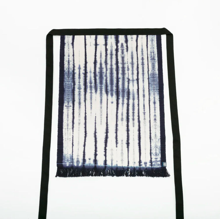 This apron showcases Arimatsu Shibori, a traditional Japanese tie-dyeing technique from Aichi Prefecture that has been carefully handed down through generations. Each piece is hand-dyed, making every pattern truly one of a kind.