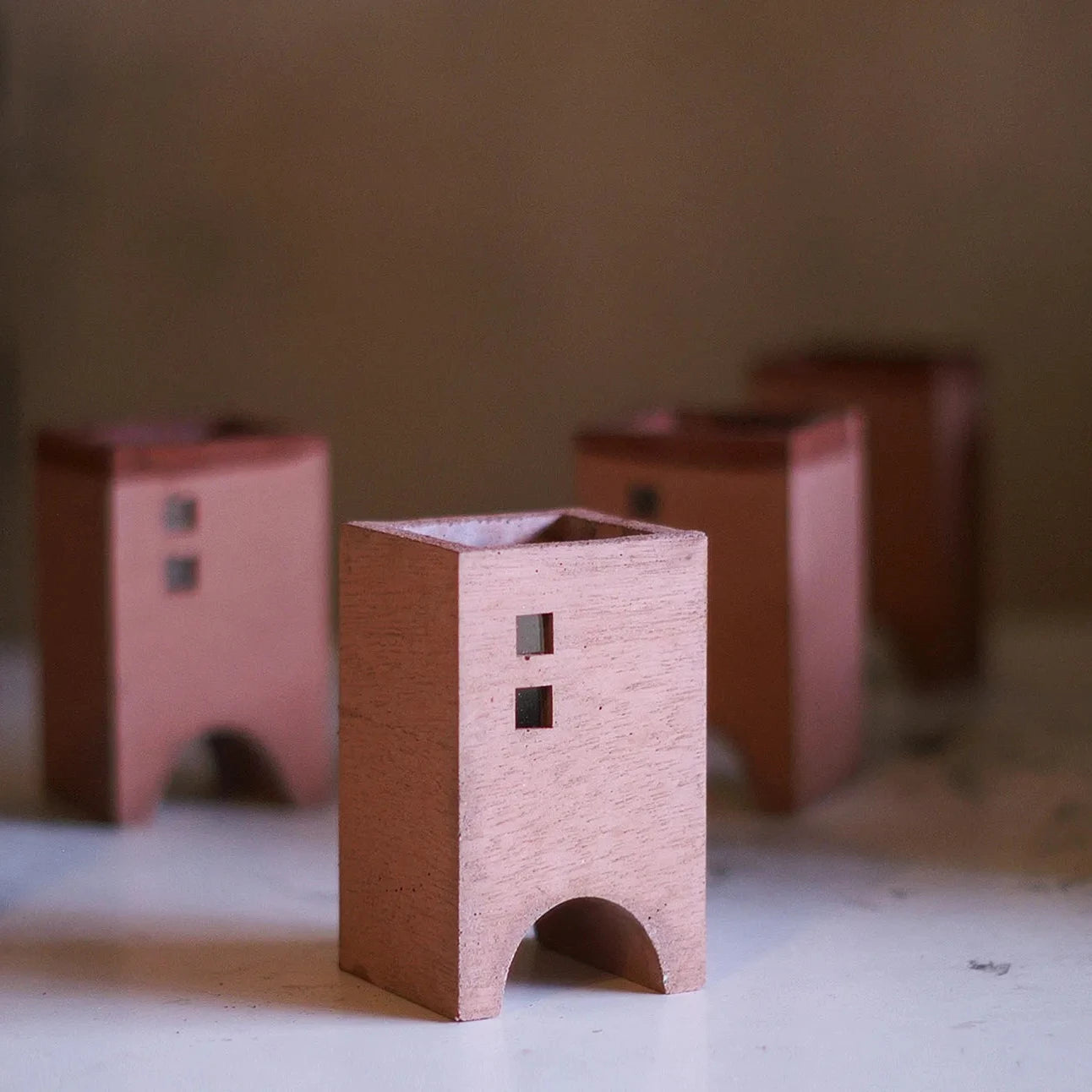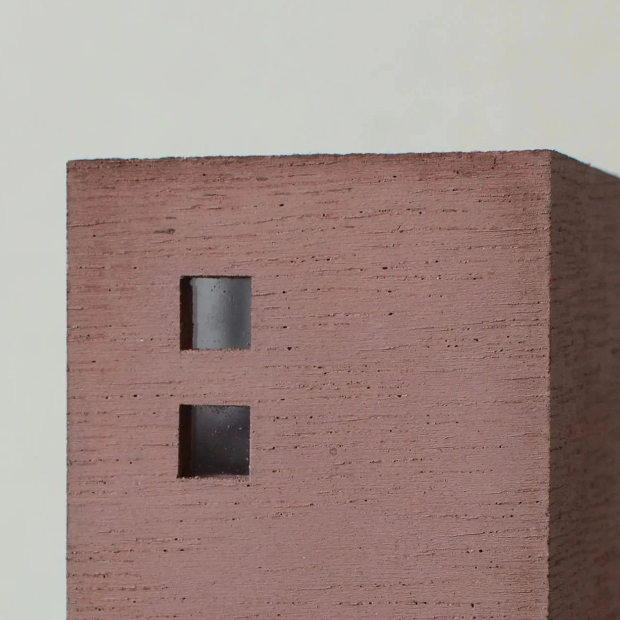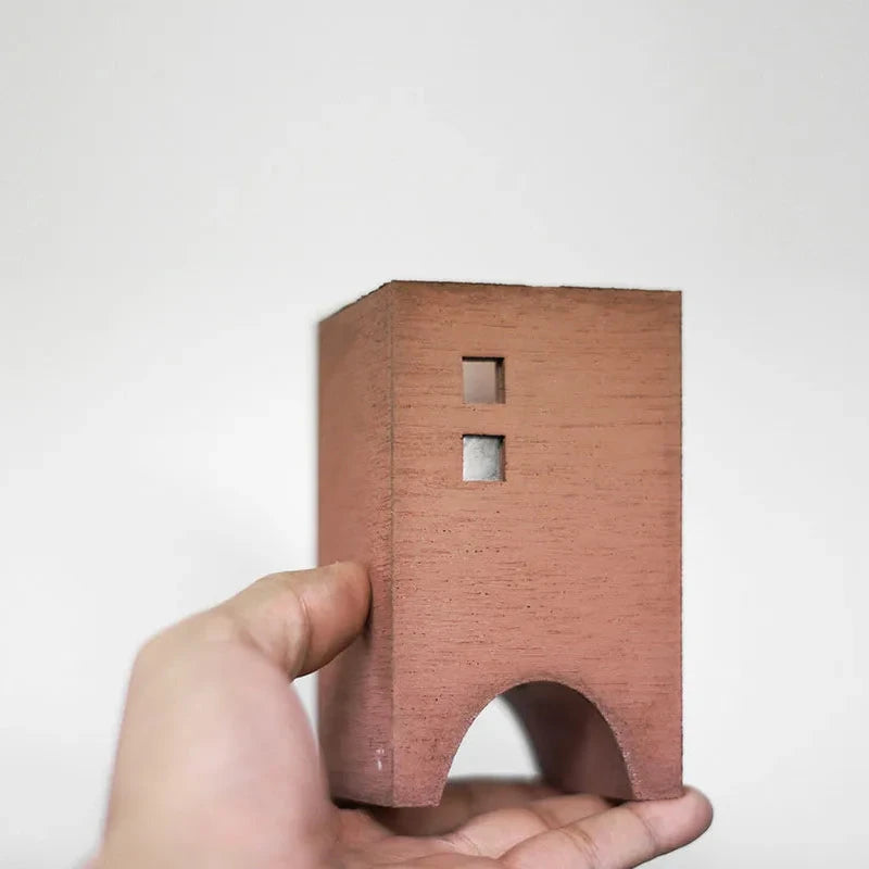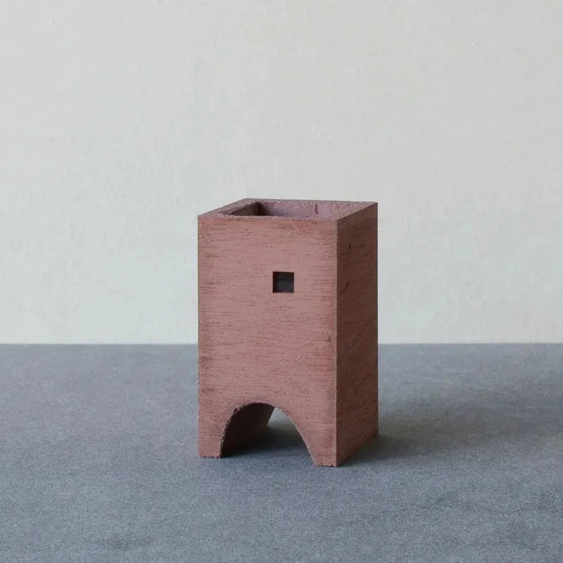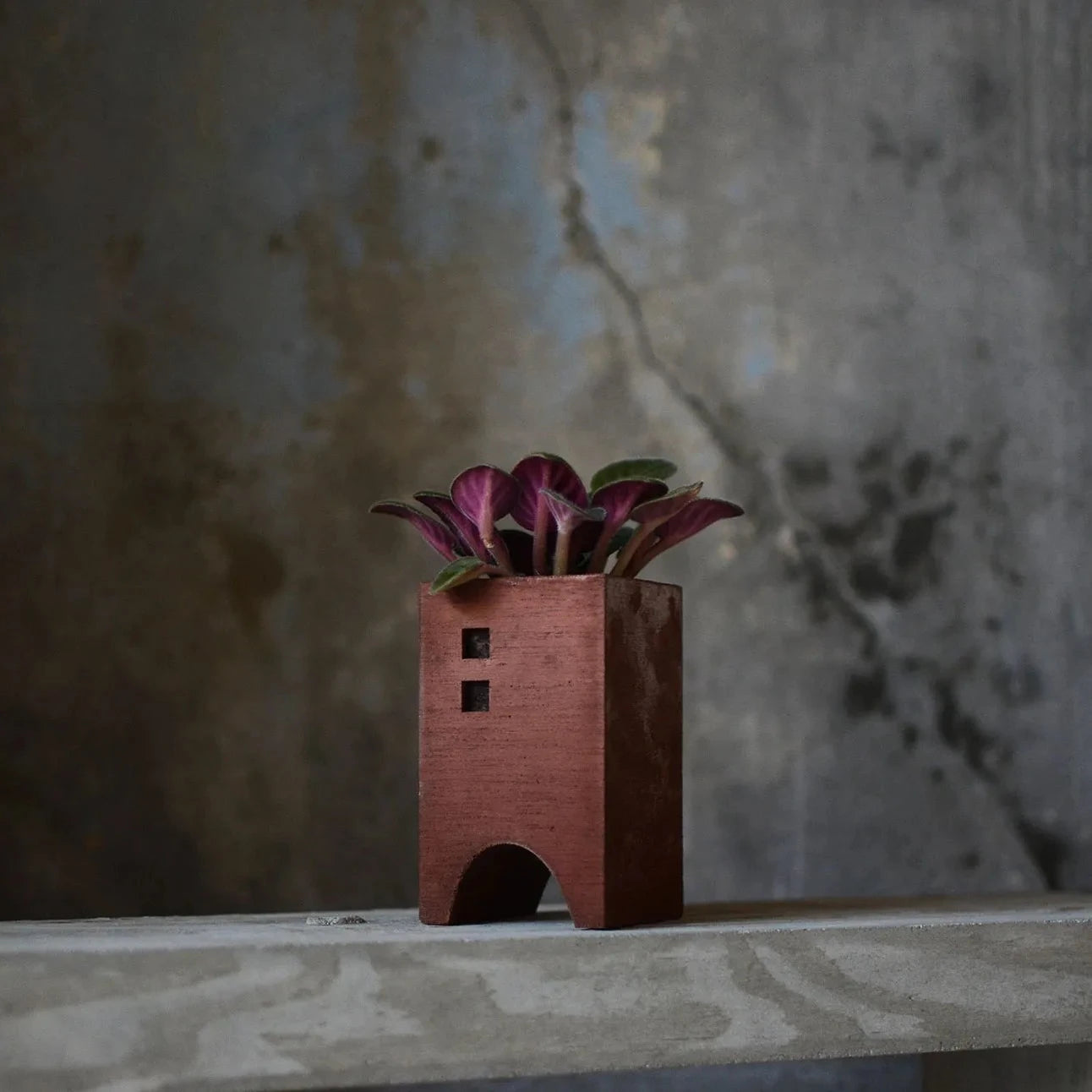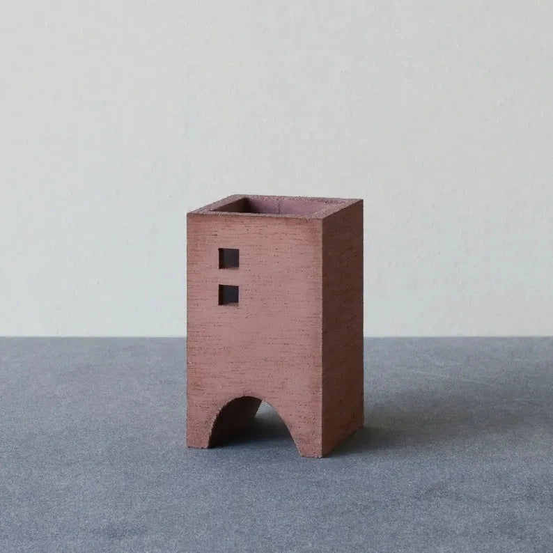 The TUNNEL PLANTER is a small, tunnel-shaped planter that appears to pierce through a brick-colored structure. By planting directly into the mortar body, the piece gradually develops richer surface textures through natural weathering caused by rain, wind, and daily environmental exposure.