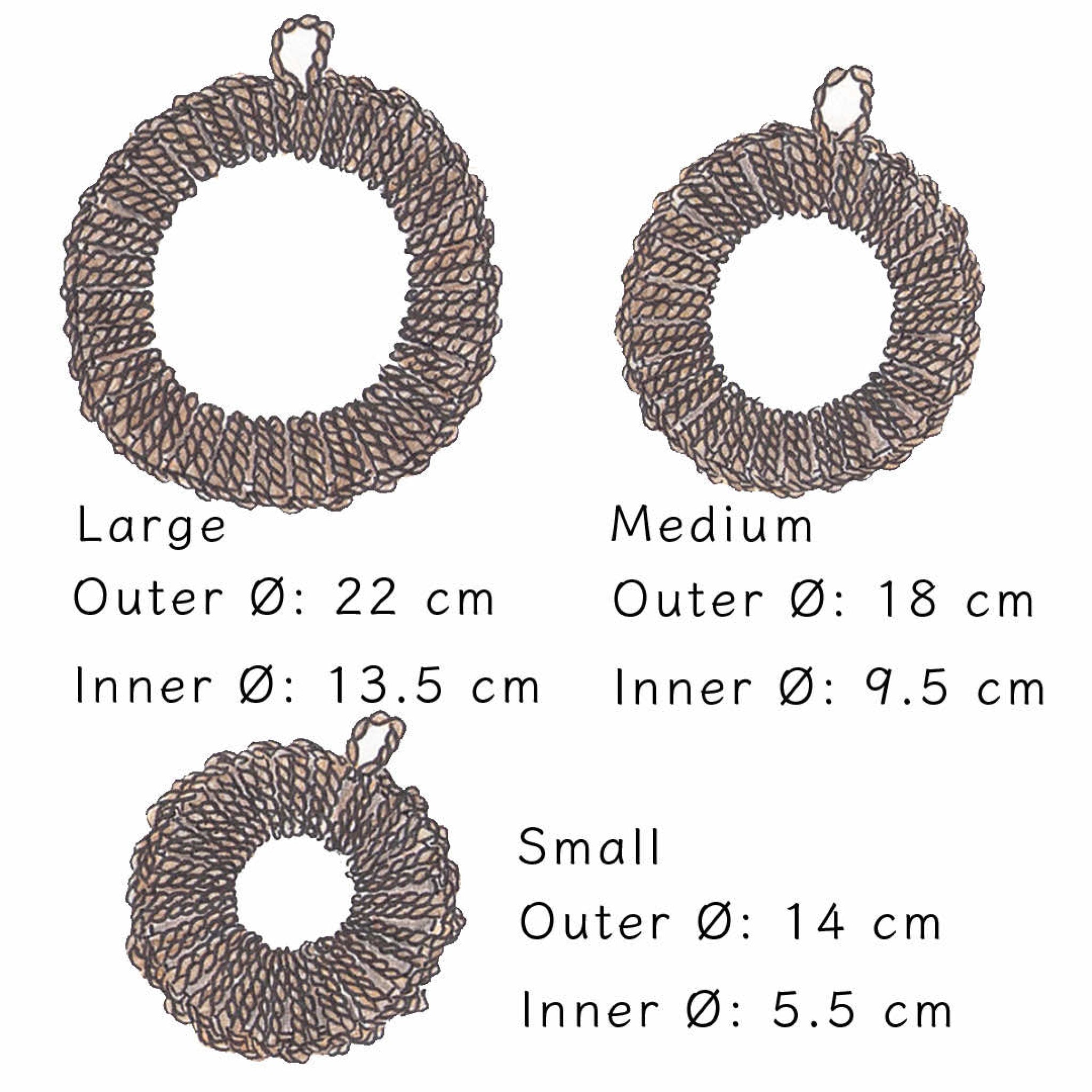 Dimensions L: dia220 x h25 mm, M: dia180 x h25 mm, S: dia140 x h25 mm